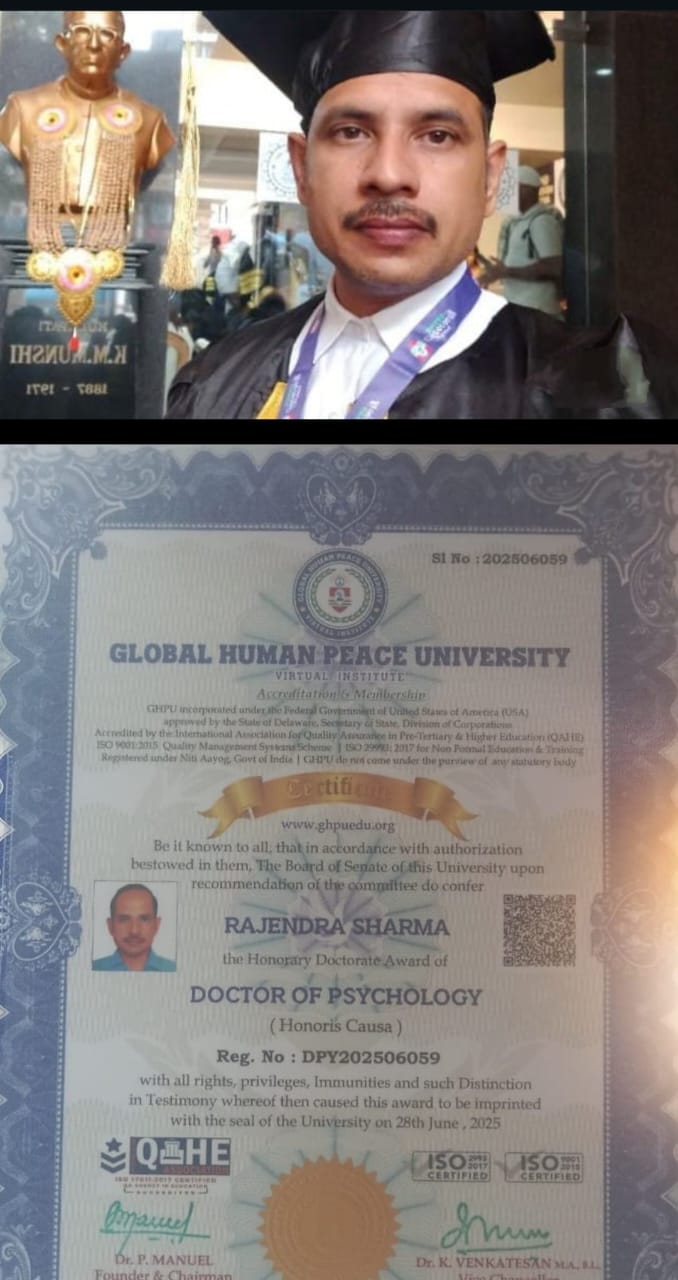 राजेन्द्र शर्मा को मनोविज्ञान मे डॉक्टरेट की उपाधि